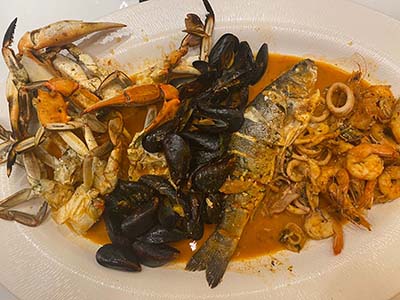 Levrek, karkalec, kallamare, midhje, gaforre, pomodorini.