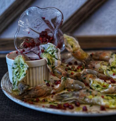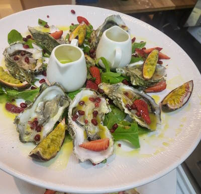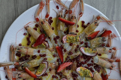 I marinuar me vaj, limon, shoqerohet me rukola, frut pasion, shege, luleshtrydhe